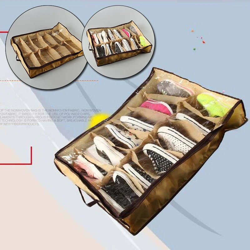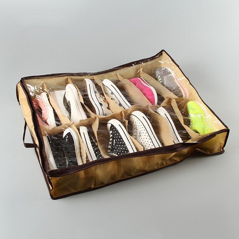 12 Pair Under Bed Shoe Organizer Storage Holder Shoe Box Tidy Bag Rack Pockets