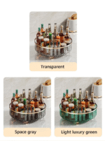 Keep your beauty essentials neatly arranged and within reach with this 360° Rotating Cosmetic Organizer. Designed with a light luxury aesthetic, it adds elegance to your vanity while maximizing space. Perfect for storing perfumes, skincare products, makeup, and accessories, this organizer rotates smoothly, allowing easy access from all sides.