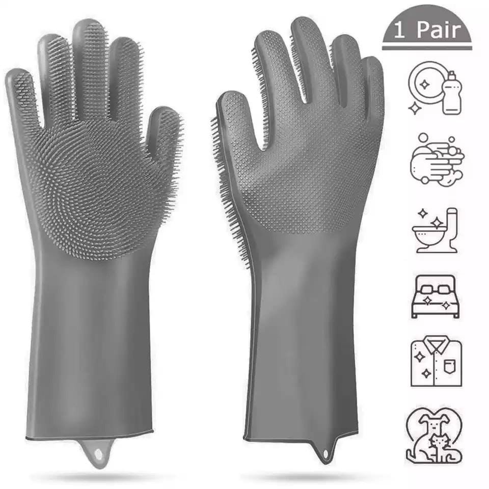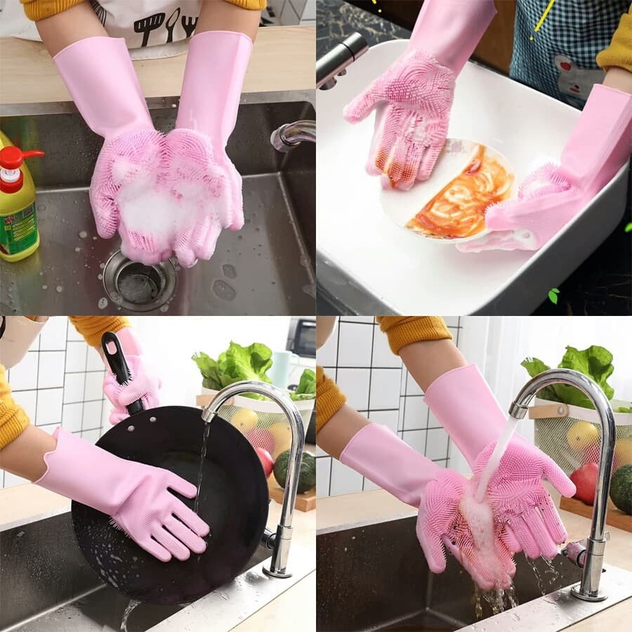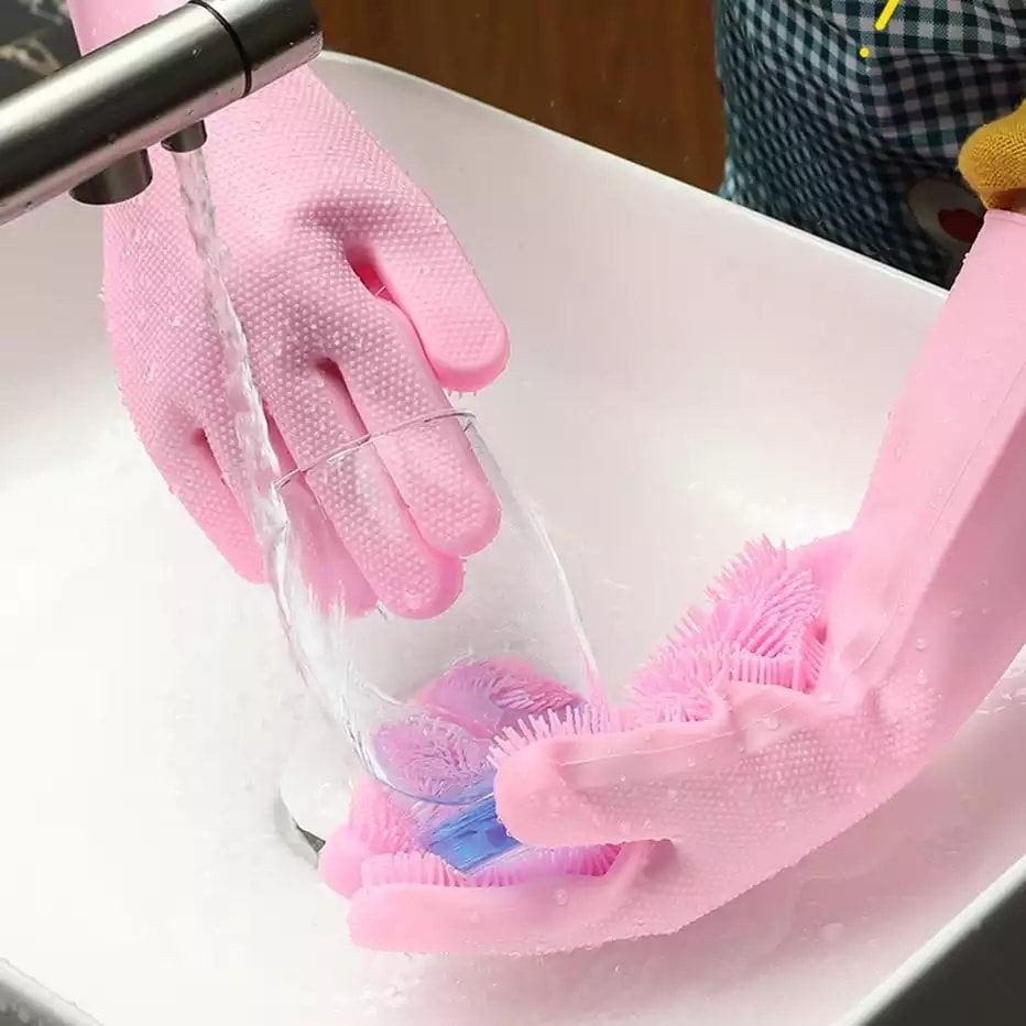 এই সিলিকনের গ্লাভস আপনি হাতে পরে থালাবাসন ও অন্যান্য তৈজসপত্র মাজতে পারবেন, পরিষ্কার করতে পারবেন রান্নাঘরের তেল চিটচিটে অংশ।